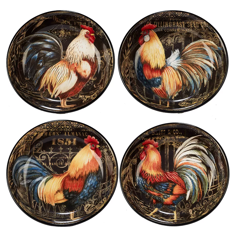 Serve up your favorite soup or pasta with this Certified International Gilded Rooster bowl set, featuring stylish farmhouse-inspired designs.
