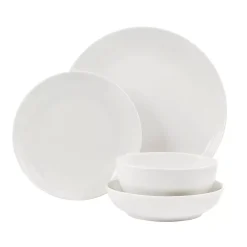 Elama Hayes 16 Piece Square Porcelain Dinnerware Set In White