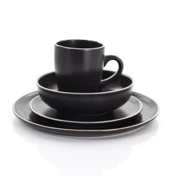 Gibson Elite Serenade 16 Piece Round Stoneware Dinnerware Set In Black