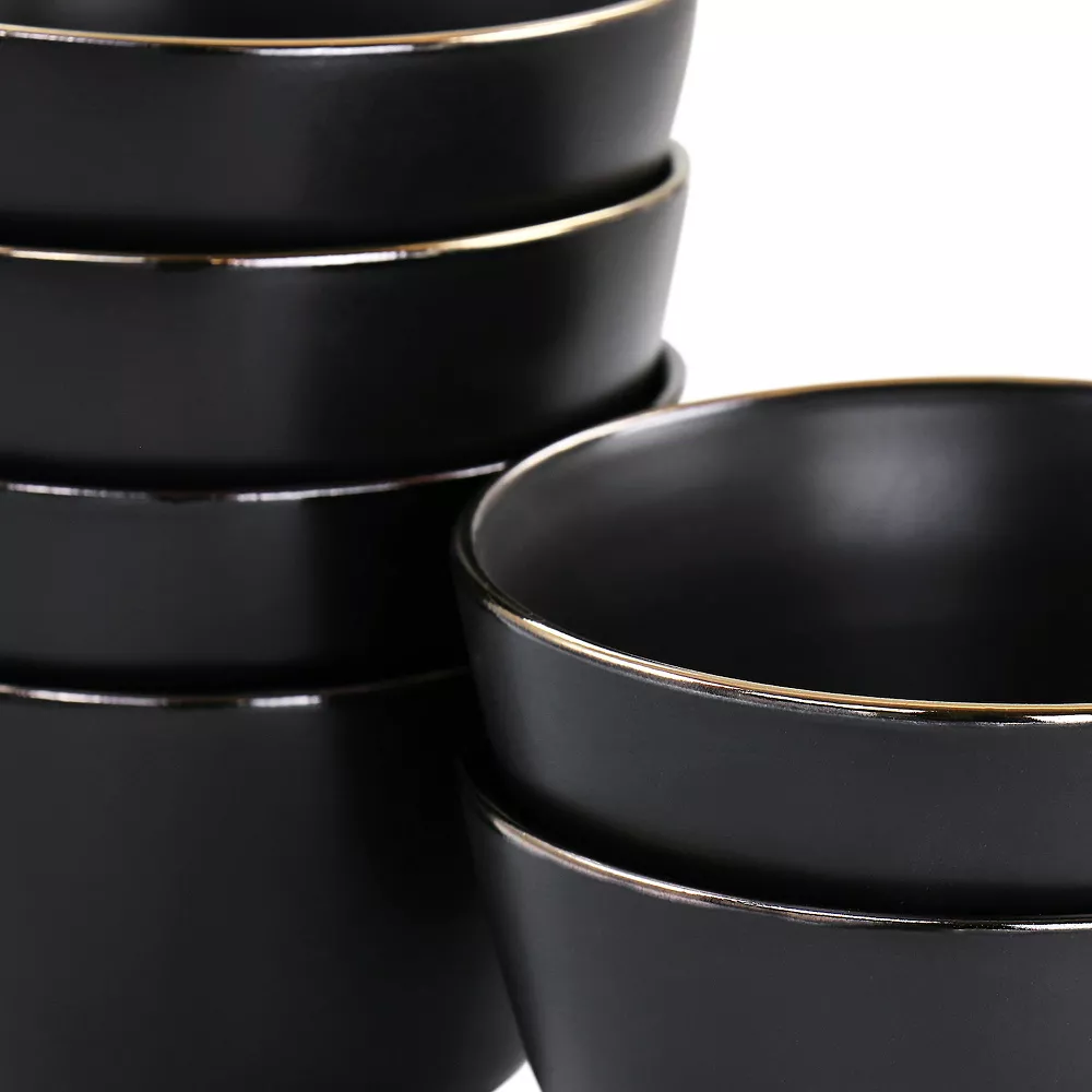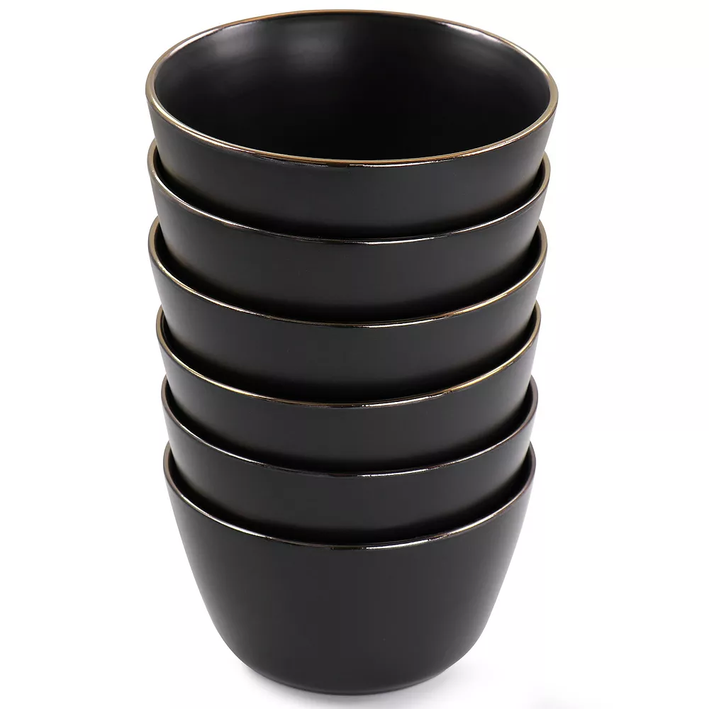 Add a beautiful accent to your dining table with the Arthur 6 Piece Bowl Set in sophisticated Matte White with Gold Rim Trim. Each piece is creatively crafted with a unique flat base and trimmed in gold. Beautifully finished off with a thin elegant gold rim, this set is a statement piece. Constructed of Stoneware, these bowls are ideal for special occasion gatherings and sturdy for every day use. Each bowl is microwave safe for quick reheating and dishwasher safe for easy cleaning. Mix an match with new pieces and pieces you’ve collected over the years.