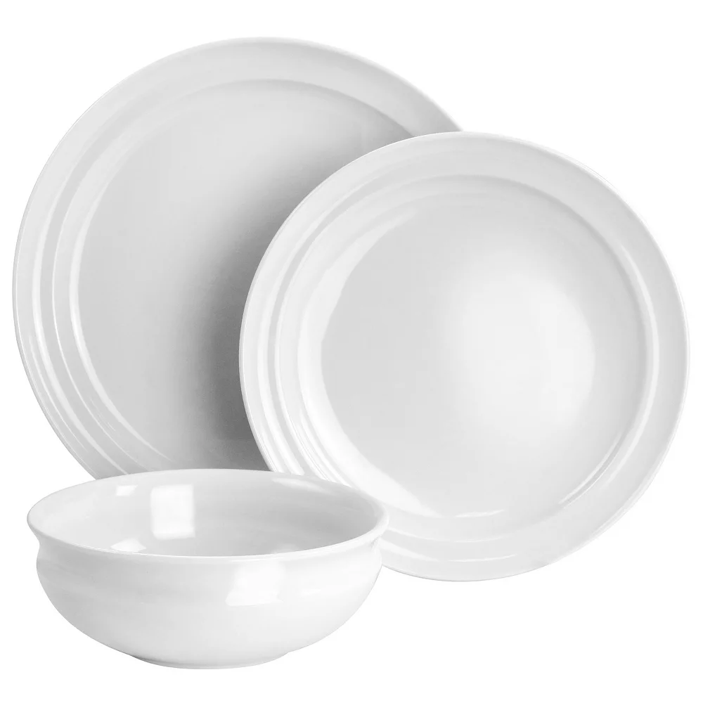 Setting the table should feel like the culmination of a dining experience carefully planned and lovingly created, and with this classic, elegant white Dinnerware Set, that’s exactly what happens. The Hillington collection provides the perfect setting for any type of entree, side, or dessert, giving your homecooking the polished platform it deserves. The Set is comprised of four 10.8 dinner plates, four 9 dessert plates, and four 6.5 cereal bowls, each made from fine ceramic with a high-gloss finish.