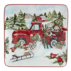 Certified International Red Truck Snowman 4-pc. Dessert Plate Set