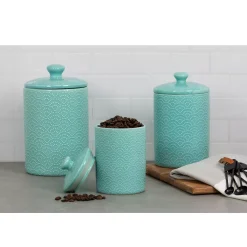 10 Strawberry Street Tide Embossed 3-pc. Ceramic Canister Set
