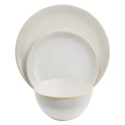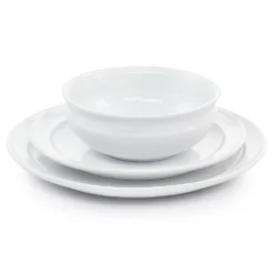 Martha Stewart 12 Piece Fine Ceramic Rimmed Dinnerware Set In White
