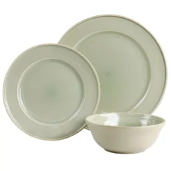 Martha Stewart 12 Piece Perry Street Piece Dinnerware Set With Green Trim
