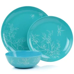 Martha Stewart 12 Piece Leafy Floral Melamine Dinnerware Set In Turquoise